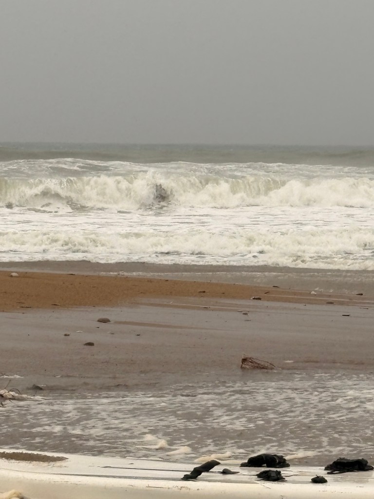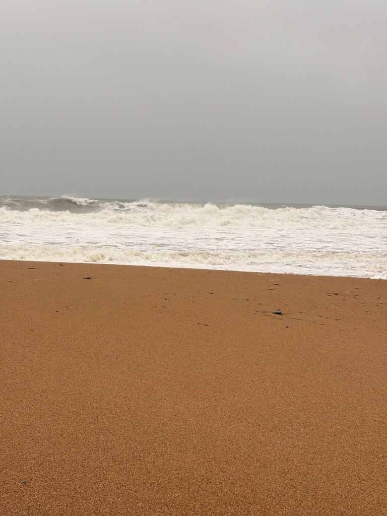 Yöllä tuuli alkoi. Auto heilahti aina välillä ja kova pauhu kuului mereltä. Sitten alkoi sade. Siinähän se ropisi. Ei niin kovasti,ettei kuullut omia ajatuksia mutta satoipa kuitenkin.