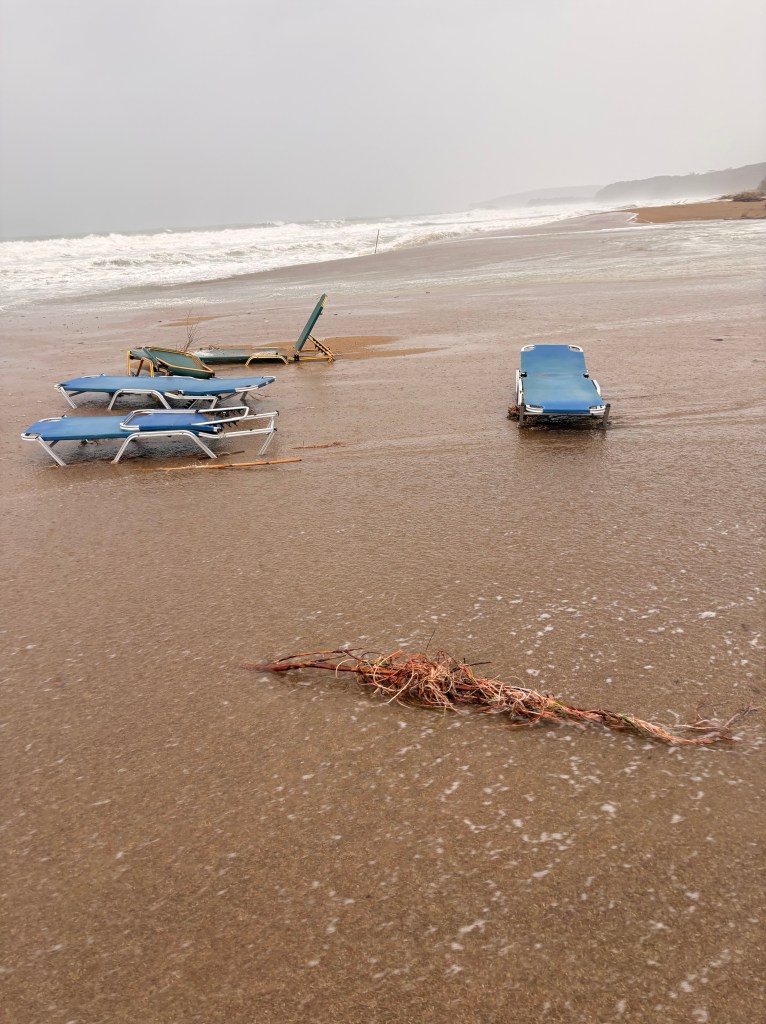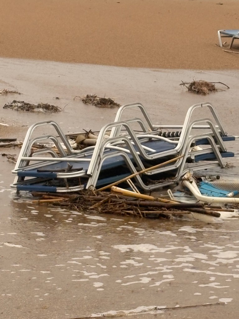 Näkymä melko lailla sodan jäljiltä. Ystävämme sanoivat, etteivät lähde tänään Italiaan ja se on hyvä se. Luin kuinka Sisiliaan sekä etelä-Italiaan on myrsky iskenyt vielä pahemmin kuin tänne. Myös Maltalla on ongelmia . Meri on noussut taloihin sisälle. Espanjaan odotetaan tätä myrskyä myös. Vuosiin ei ole ollut tällaisia ilmoja ,näin kylmää kuin nyt. Tosin tänään lämpötila oli +16 ja vaikka tuuli niin se on etelätuulta joten ei yhtään ikävää.