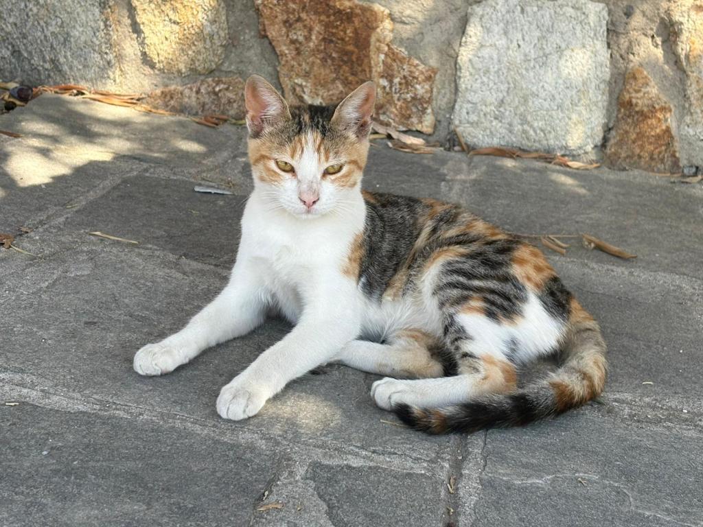 Siiri on tyytyväinen koska täällä on maukasta kissankakkaa syötäväksi asti. Ihanan kuivaa ja rapsakkaa🤮mutta makunsa kullakin. Nyt tytöt vetelevät sikeitä puuhun sidottuina ja me lähdetään Petun kanssa koittamaan onko vesi tarpeeksi lämmintä meille viluisille.