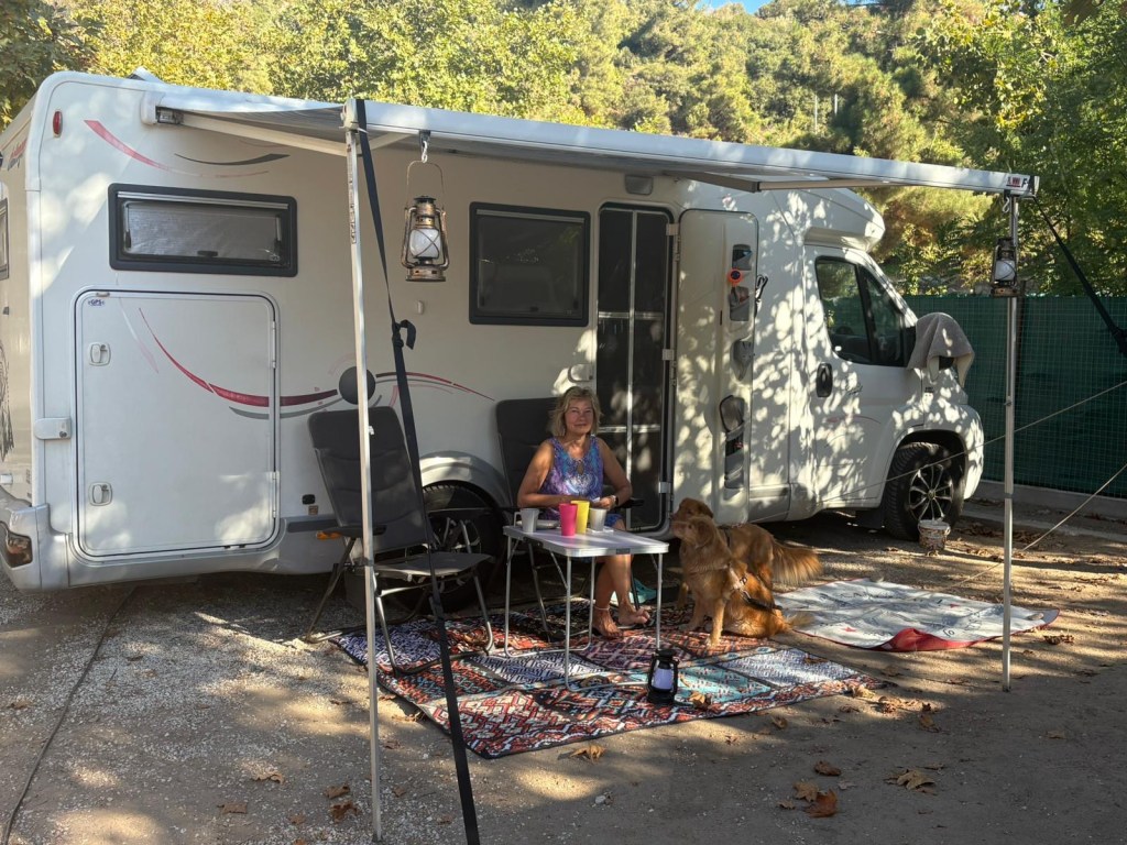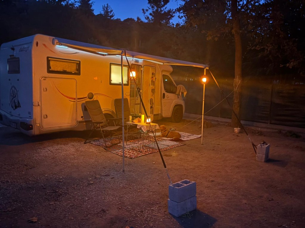 Tämä Kavalan kaupunki ja leirintäalue on kyllä antanut lepoa ja rauhaa, eiliseen asti. Täällä(kin) on kausipaikkalaisia ja koska eilen oli perjantai niin väkeä saapui. Meidän viereen tuli varmaan 20 Kreikkalaista. Paikalla taisi olla kaikkien serkut ja pikkuserkut. Oli lapset sylivauvasta isompaan. Oli kaksi koiraa(pientä) jotka saivat seikkailla vapaana. Siirimummeli suorittu rutinallaan pienelle koiralla häädön ja Sohvi joka nukkui sikeästi, heräsi ja aloitti päättömän haukkumisen😂