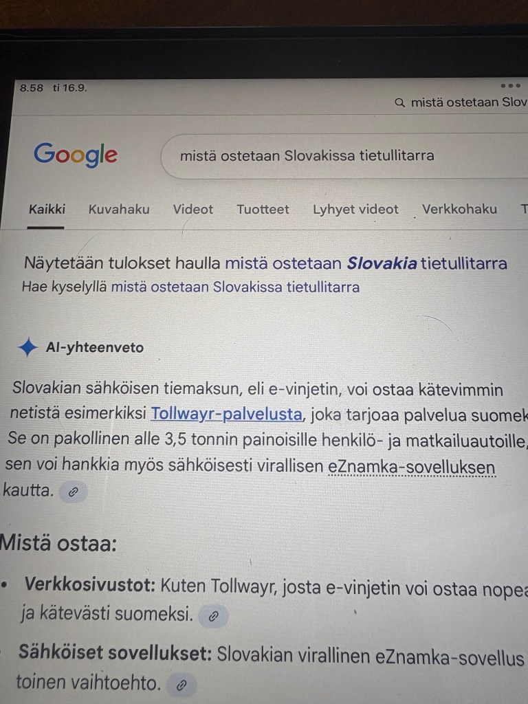 Matkaa jatkettiin, suuntana Slovakia. Ja niin alkoi Puolan puolella tietullit. Apua,että jännitti. Parin läpi ajettiin niin,ettei siellä ollut ketään ja kahteen ajettiin niin,että olikin maksun aika. Valittiin jono jossa oli vihreä ihminen ylhäällä. Ja humps näytettiin korttia ja rouva sanoi hyvää matkaa. 17 slotia maksoi molemmat kerrat